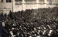 Říjnovou revolucí však jejich revoluce teprve začínala. Začal narůstat odpor proti bolševikům,[10] a vzplanula občanská válka, během které museli bolševici zvládat jednu krizi za druhou a sami často nevěřili, že se u moci udrží. Fakticky revoluci dovršilo až vítězství Rudé armády v občanské válce.